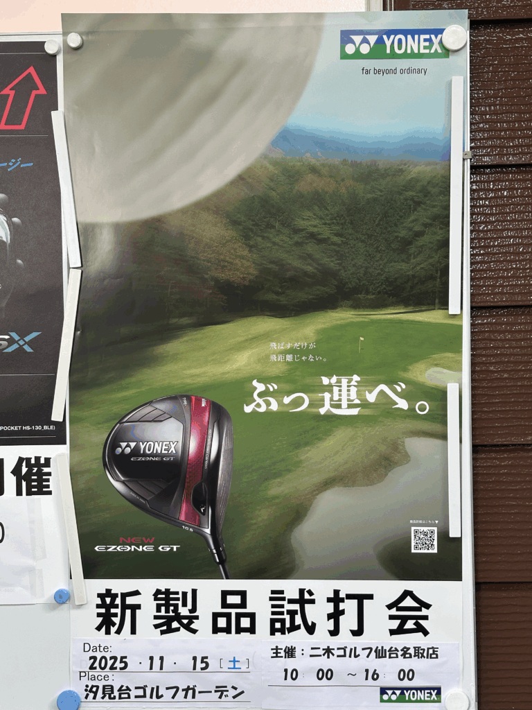 11月15日(土曜日)10:00 ~ 16:00 二木ゴルフ仙台名取店さん主催でYONEXとPRGR(プロギア)の試打会を開催致します。